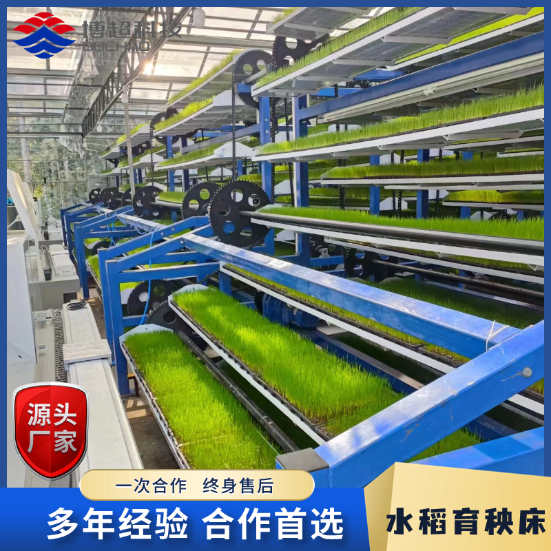 垂直立體育秧床大大提高種植面積,旋轉(zhuǎn)工藝減少了補(bǔ)光耗能,立體循環(huán)工人在固定位置就能操作,大大減少了人工。