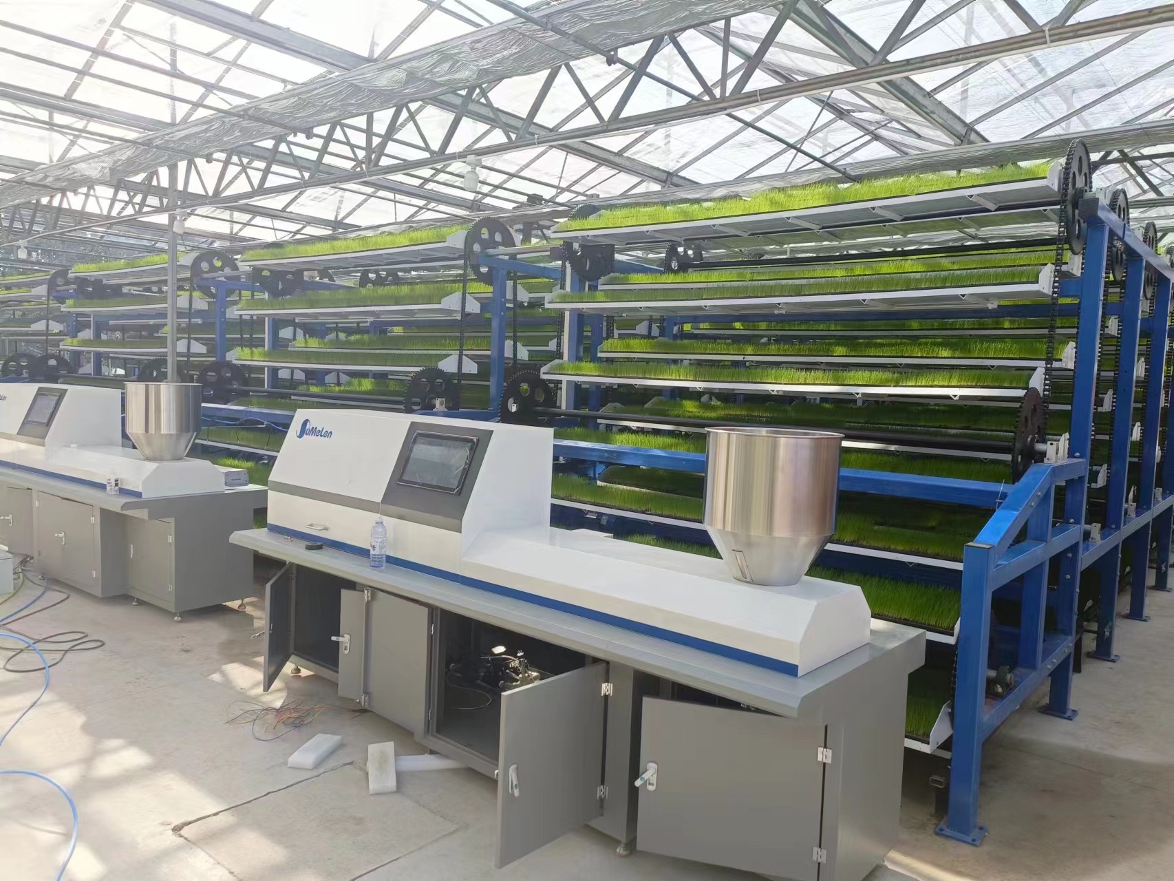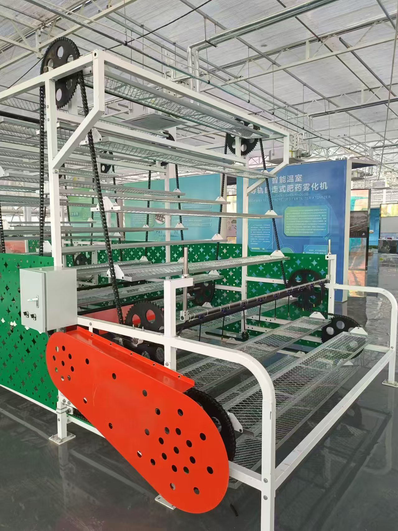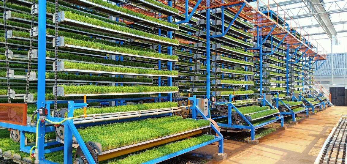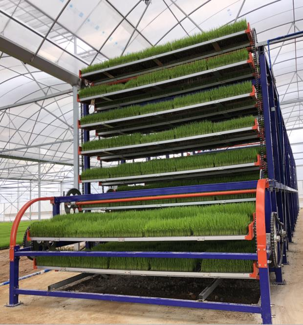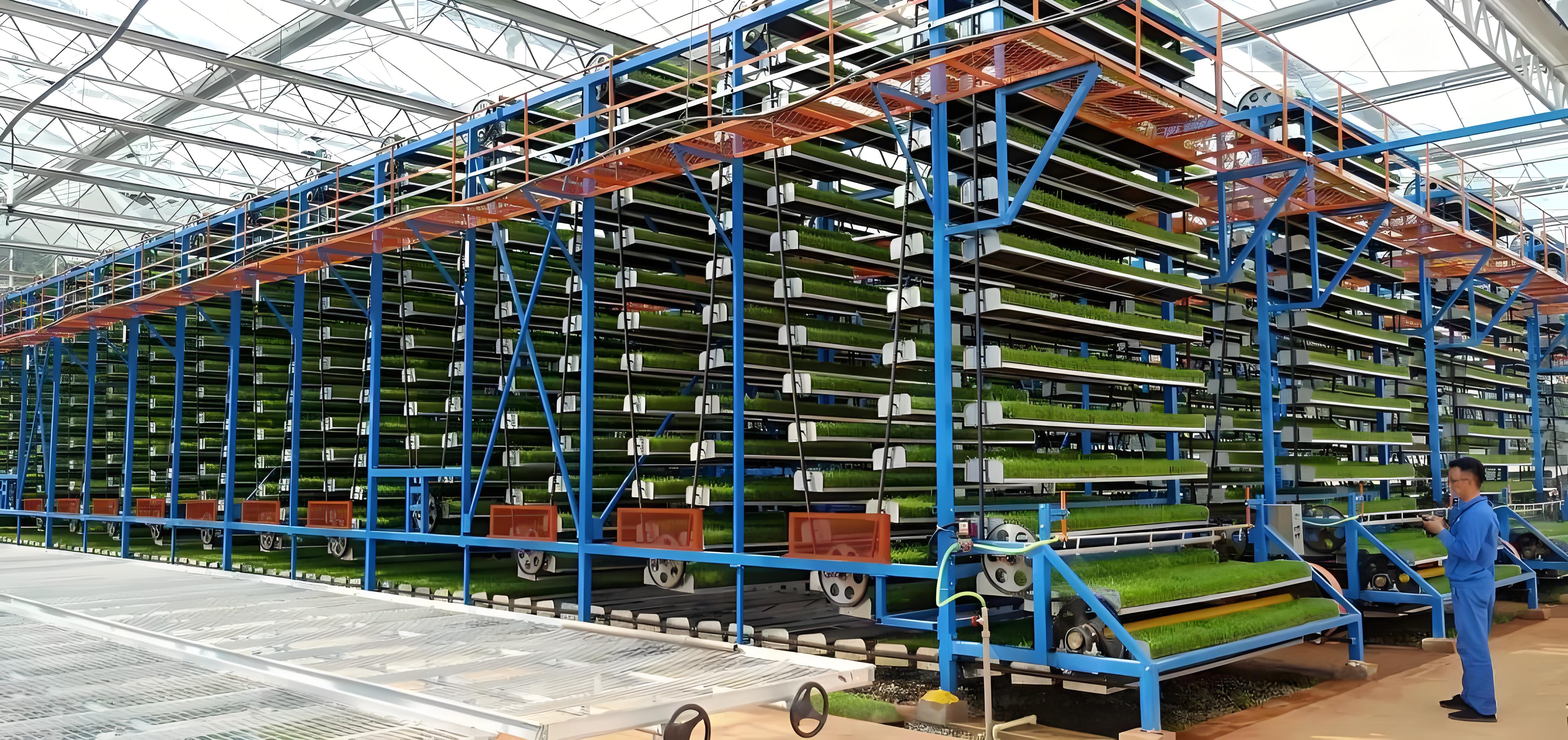 立體旋轉(zhuǎn)W型循環(huán)系統(tǒng)采用了獨(dú)特的多層“W”型或“摩天輪式”設(shè)計(jì),秧盤在齒輪驅(qū)動(dòng)下循環(huán)移動(dòng),確保每層秧苗都能均勻接受光照、溫濕度調(diào)控。這種設(shè)計(jì)使得空間利用率大幅提升,單位面積育苗量可提升3—8倍。例如,廣東江門某工廠占地僅1700平方米,卻可滿足1萬畝稻田的用苗需求,充分展示了該系統(tǒng)的高效性。